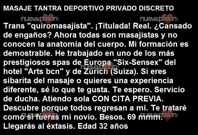 Bonjour, je suis Sandra, une experte trans en hétérosexuels curieux et en sybarites de massage. Je suis massothérapeute certifiée et j'offre mes services seule avec la plus grande discrétion. Fatigué de vous faire arnaquer ? De la lecture des publicités pour les massothérapeutes et sans même connaître l'anatomie du corps..., je vous propose une expérience unique pour vos sens. Je suis un expert en débutants. Vous avez toujours été curieux de rencontrer une fille trans mais n'avez pas osé ? Aujourd'hui c'est ton jour ! Prenez rendez-vous et mes massages vous emmèneront vers l'extase où la fin sera une explosion de plaisir.... Avec mes mains douces et ma grande surprise** Vous découvrirez de nouvelles sensations qui vous feront voyager dans un monde de fortes doses de plaisir. Je t'attendrai au service de douche. avant et après le massage. Avez-vous toujours été curieux de rencontrer une fille avec le meilleur attribut d'un homme ? Je sais ce que tu aimes... tu décides de la fin... Découvre pourquoi tout le monde revient vers moi. De vraies photos !!! Aucune tromperie ! JE SUIS VOTRE MEILLEURE OPTION. Bisous, caresses et plus encore.(je ne réponds pas aux numéros masqués) privé Discrétion maximale. RENDEZ-VOUS SUR RENDEZ-VOUS. Je suis un vrai diplômé ! Votre meilleure option. Je te traiterai comme si tu étais mon petit ami. Je sais ce que tu aimes... Les bisous, les caresses... Un appartement haut de gamme. (A quelques mètres de l'hôtel Ibis (ronda) parking facile