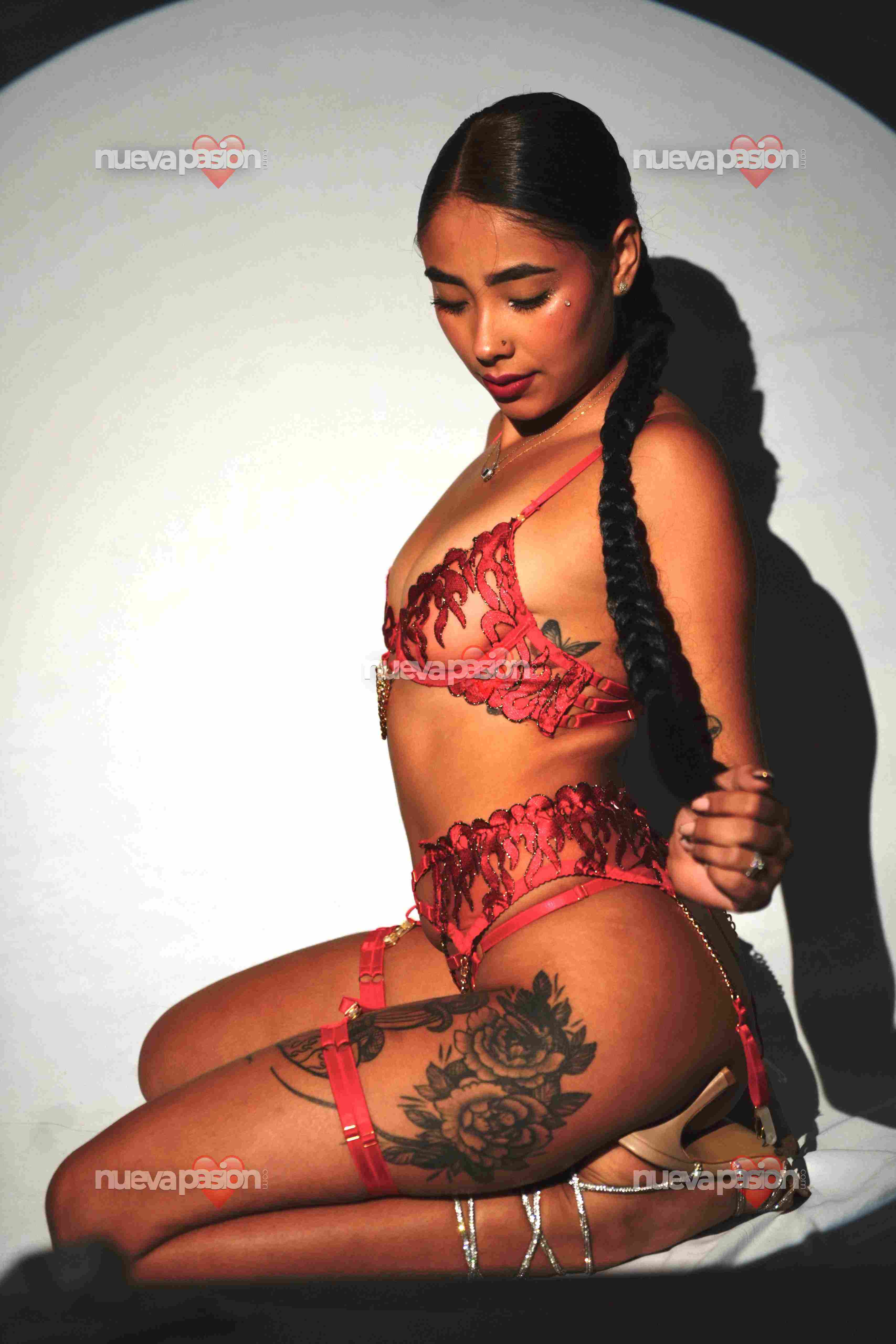 Me considero una latina fogosa, soy una colombiana de figura sensual. Mi belleza no solo radica en mi cuerpo esbelto y mis curvas llamativas, mi rostro también seduce y mucho. Mis rasgos exóticos y mis bonitos ojos suelen ser otras de mis virtudes físicas.