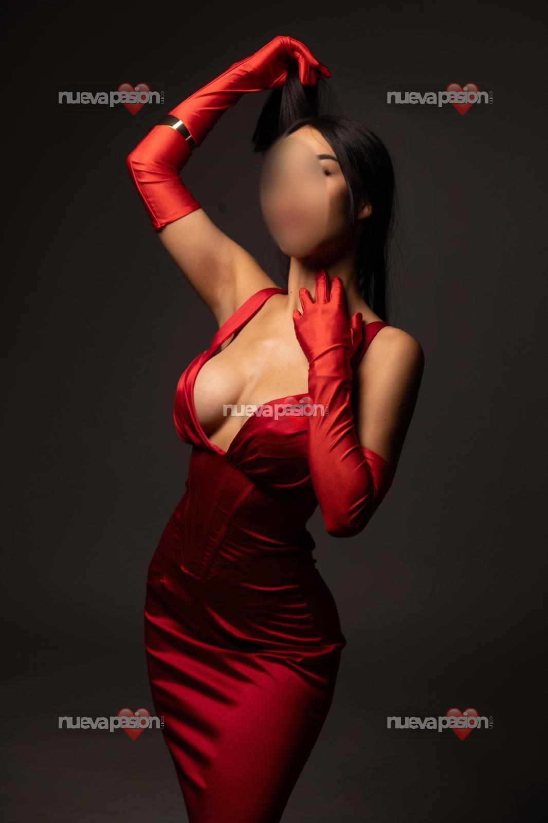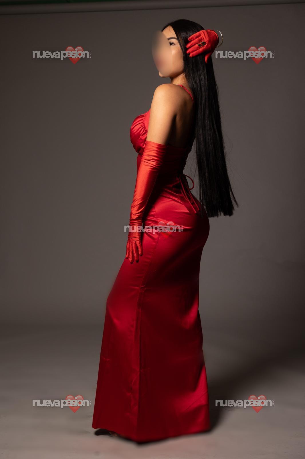Sus ojos negros brillan con una intensidad profunda y seductora, capaces de atrapar a cualquiera con una sola mirada. En ellos se mezclan dulzura, misterio y un fuego irresistible que despierta curiosidad y fascinación. Su cabello negro cae suavemente sobre sus hombros, enmarcando su rostro con una sensualidad sutil y sofisticada.